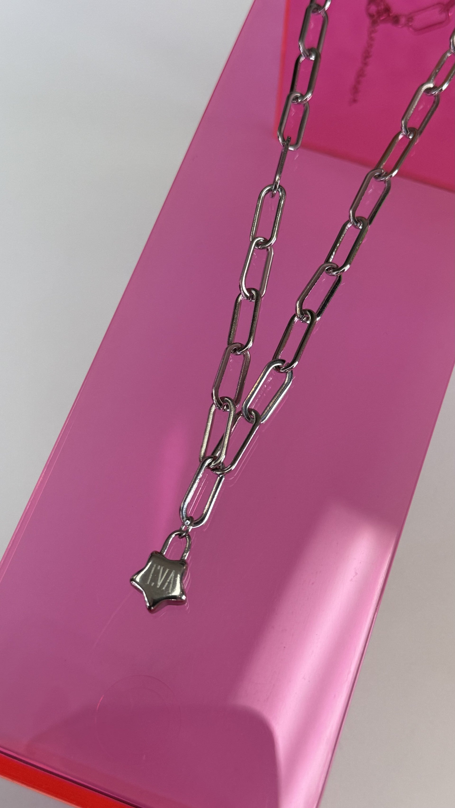 Our Star Lock Chunky Paperclip Necklace is a bold yet timeless statement designed for everyday wear. Featuring a chunky paperclip chain finished with a polished star charm, this piece adds just the right amount of edge with a custom touch.